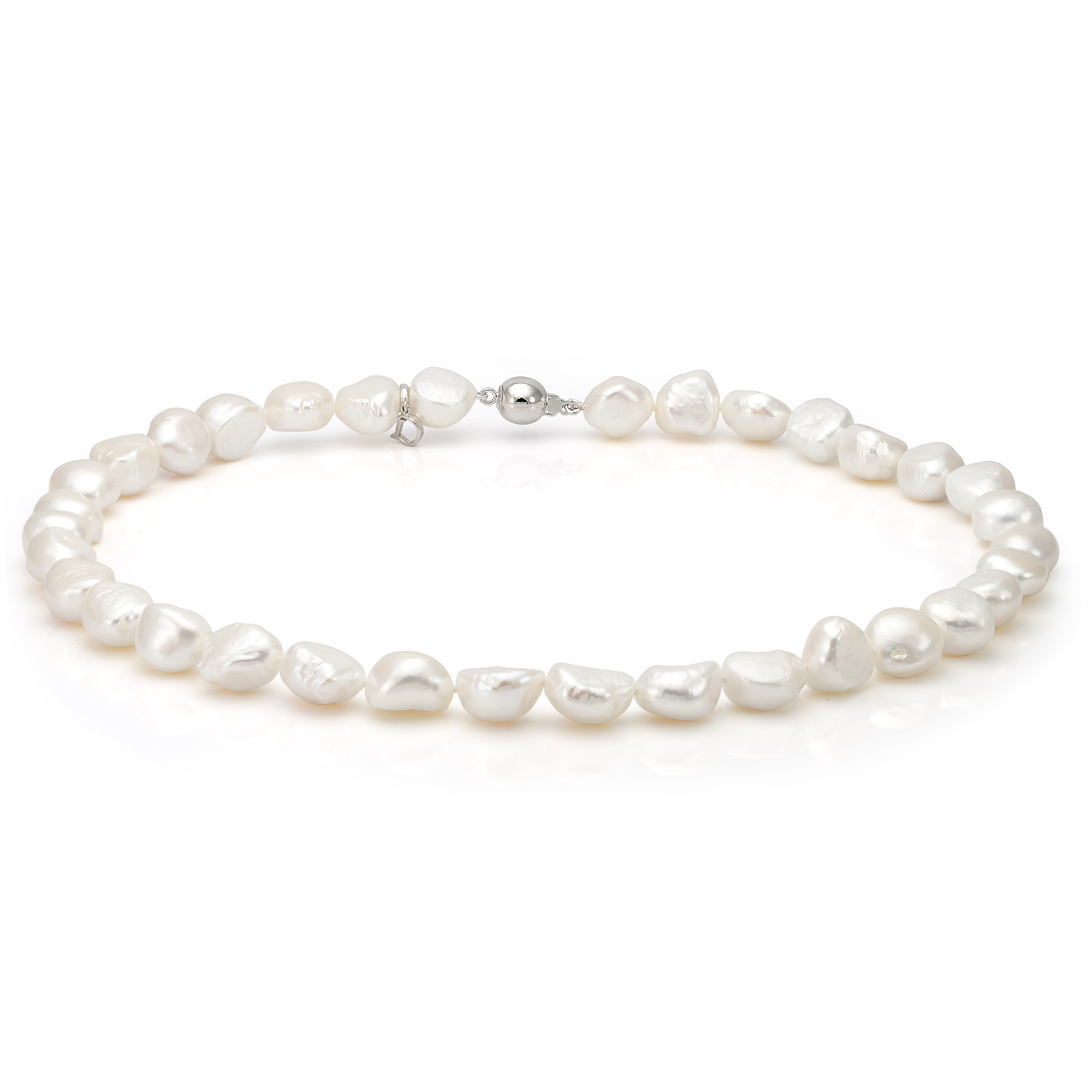 Ожерелье из белого барочного речного жемчуга класса ААА. Жемчужины 9-9,5 мм, (7814)