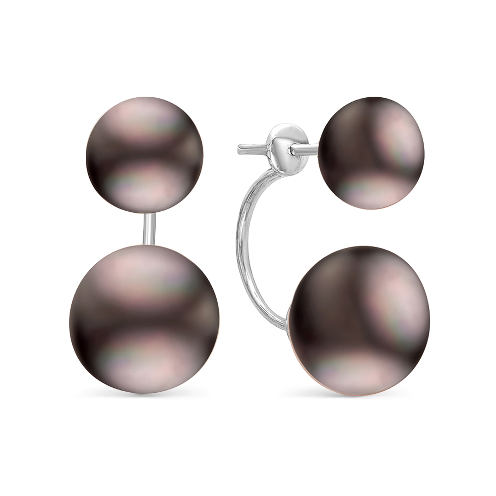 Двойные пусеты из серебра 925 пробы украшены черным пресноводным жемчугом. Варианты замка - простой или винтовой.