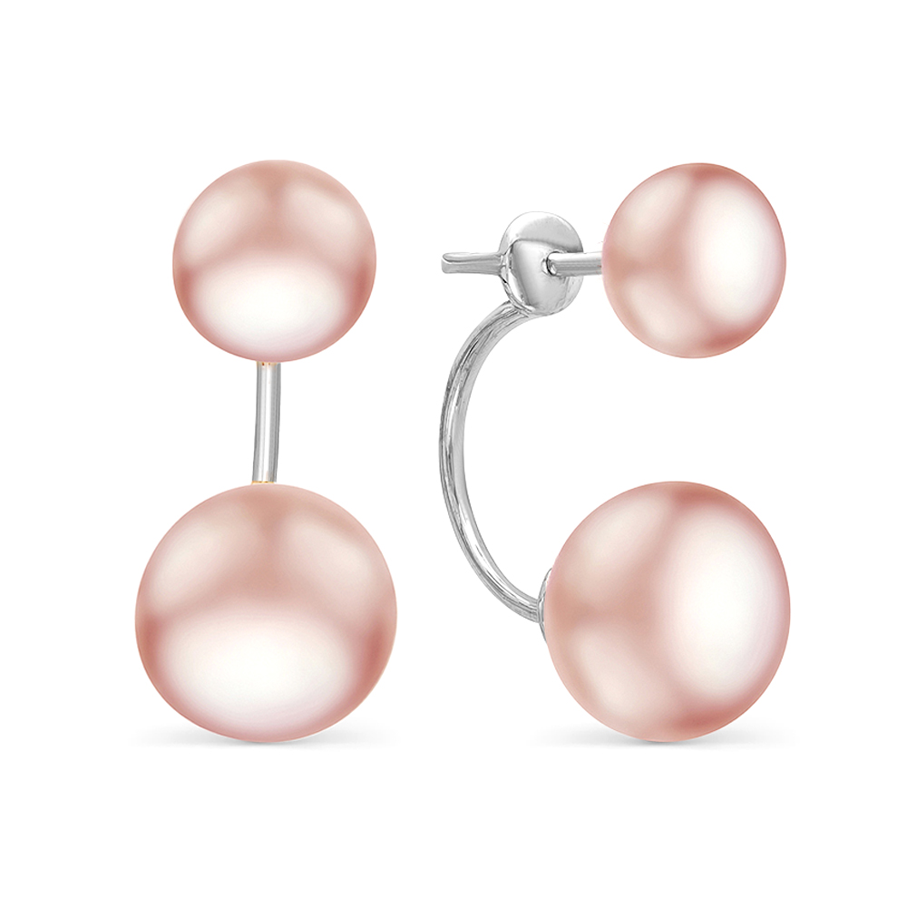 Пусеты "Диор" из серебра с розовыми речными жемчужинами 8,5-11 мм, (3377)